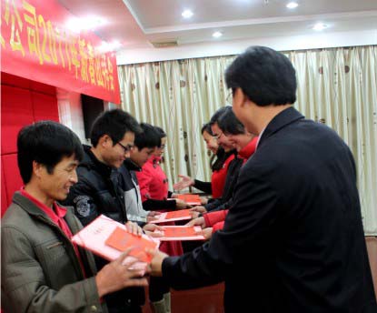 公司每年舉行一次新春團拜會,全體員工歡聚一堂。團拜會簡要的總結(jié)公司一年來的業(yè)務(wù)經(jīng)營狀況,展望來年的發(fā)展規(guī)劃。同時,還民主評選出年度優(yōu)秀員工,并公開頒發(fā)獎金。在濃厚的節(jié)日氣氛中、在幸福與歡快的笑聲中,大家一起告別了碩果累累的昨天,攜手踏上充滿希望與憧憬的征程......
