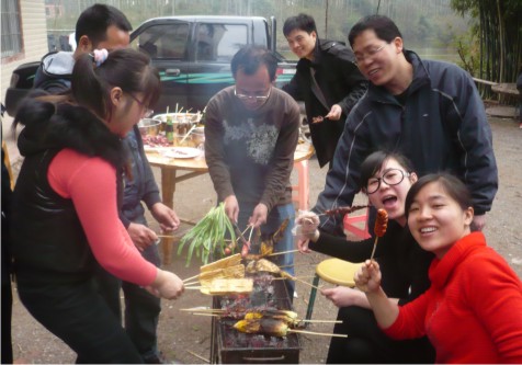 員工們?cè)诠ぷ鞯目沼鄷r(shí)間,常常組織一些集體性的休閑活動(dòng),唱歌、燒烤也是活動(dòng)的內(nèi)容之一,尤其是在春秋季節(jié),員工都自主的組織一些戶外活動(dòng),圖為項(xiàng)目部員工在戶外燒烤......